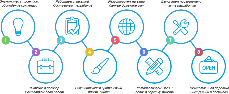 5. После поступления средств на наш счет, мы регистрируем на Вас доменное имя, подключаем систему управления.